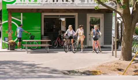 Our fleet of bike rentals include modern comfort cruisers for easy cycling, and comfortable efficient hybrids. We also have a selection of power assist e-bikes and tandem bikes.